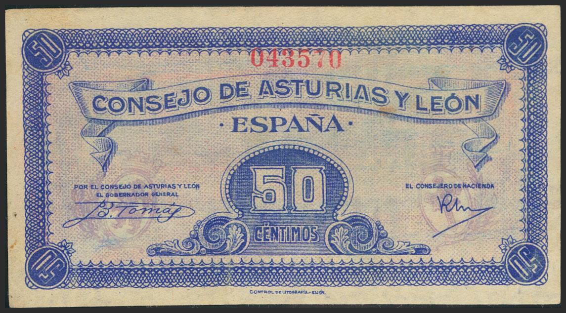 50 cents. 1937. Asturias and León. No serie. (Edifil 2021: 396). It retains a large part of its original size. Good Extremely Fine.