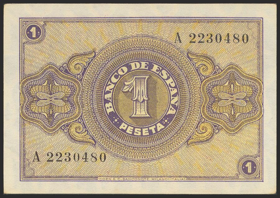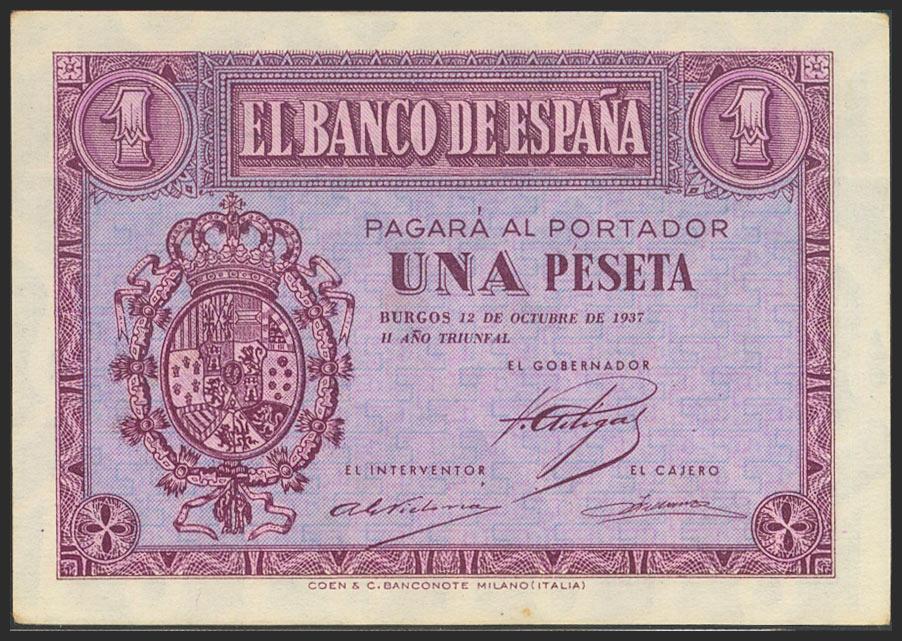 1 peseta. October 12, 1937. Series A. (Edifil 2021: 425). Original sizing. Almost Uncirculated.