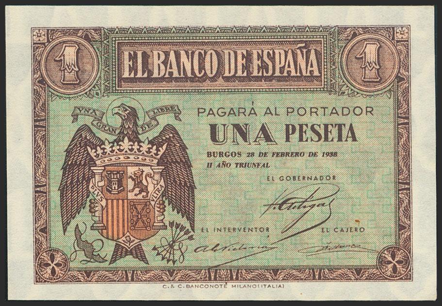 1 peseta. February 28, 1938. Series B. (Edifil 2021: 427a). Original sizing. Uncirculated.