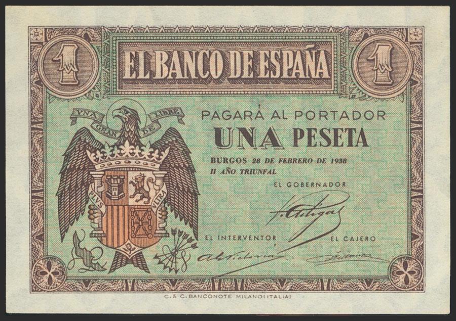 1 peseta. February 28, 1938. Series C. (Edifil 2021: 427a). Original sizing. Almost Uncirculated.