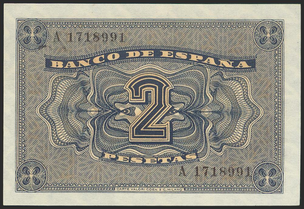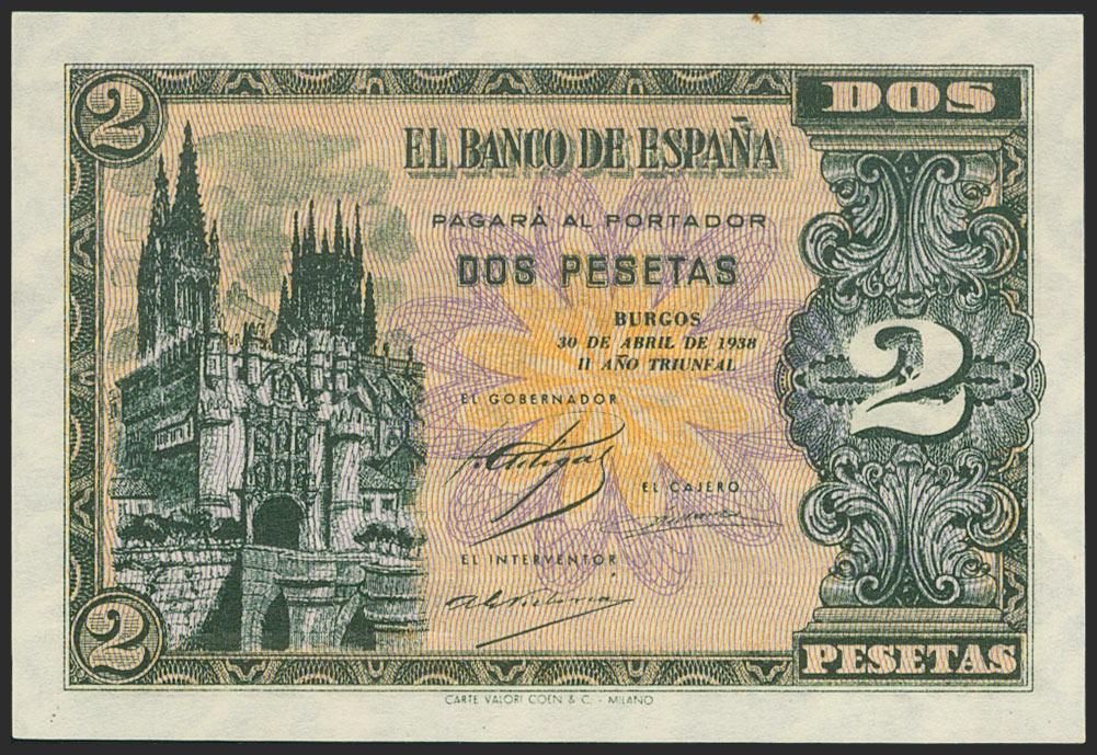 2 Pesetas. April 30, 1938. Series A. (Edifil 2021: 429). Original sizing. Uncirculated.