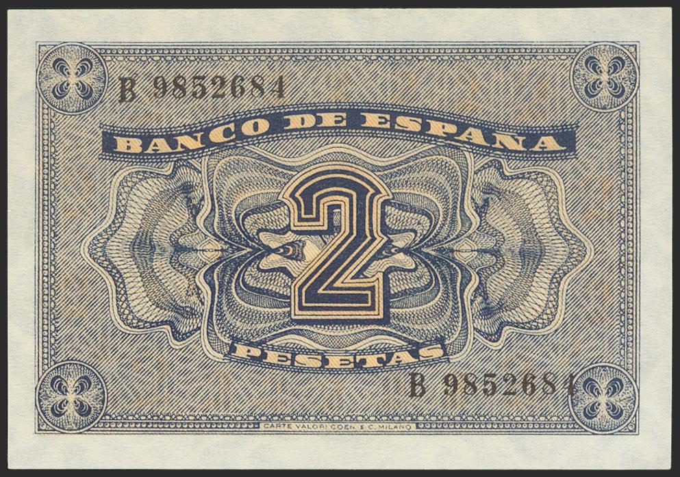 2 Pesetas. April 30, 1938. Series B. (Edifil 2021: 429a). Original sizing. Almost Uncirculated.