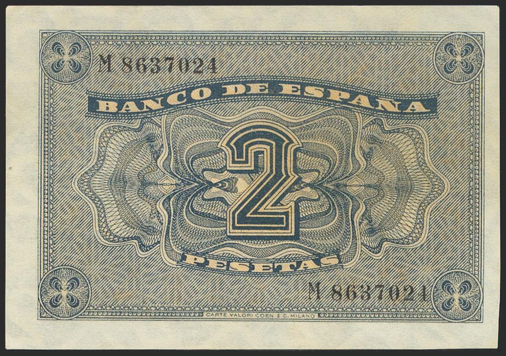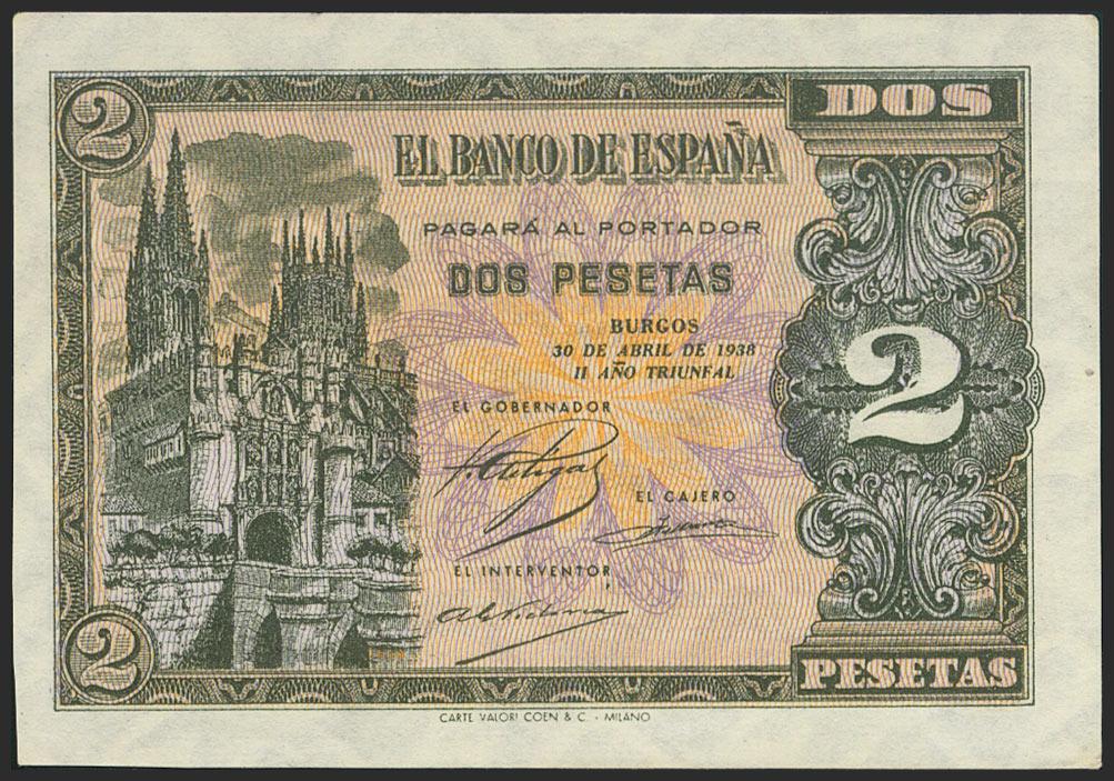 2 Pesetas. April 30, 1938. Series M. (Edifil 2021: 429a). Original sizing. Almost Uncirculated.