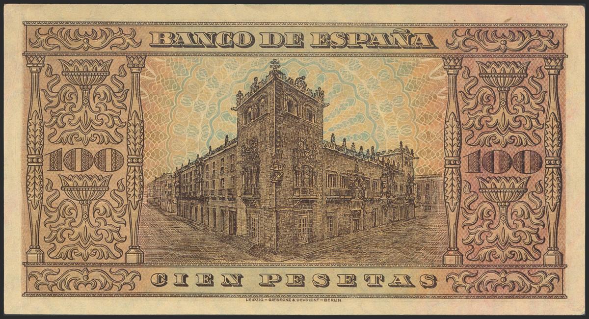100 pesetas. May 20, 1938. Series A. (Edifil 2021: 432). Original sizing, natural wrinkles of the paper (this is the only reason to "remove" the Uncirculated). Good Extremely Fine,