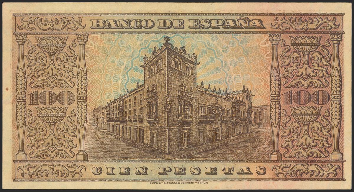 English 100 pesetas. May 20, 1938. Series D. (Edifil 2021: 432a). Retains much of the original size. Good Extremely Fine.
