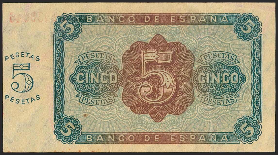 5 Pesetas. August 10, 1938. Series L. (Edifil 2021: 435a). Presents much of the original sizing. Good Extremely Fine.