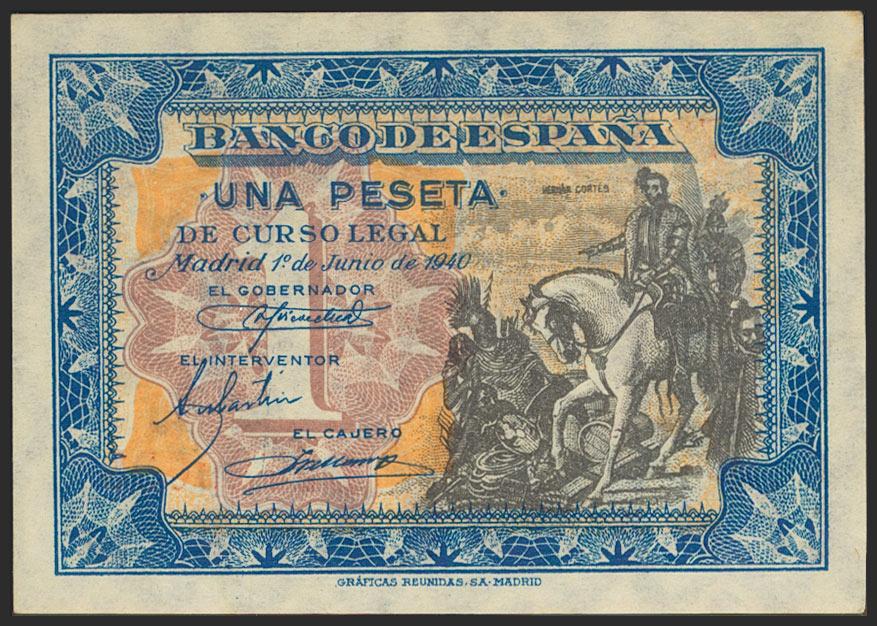 1 peseta. June 1, 1940. Series E, last series issued. (Edifil 2021: 441a). Retains much of the original size. Good Extremely Fine.