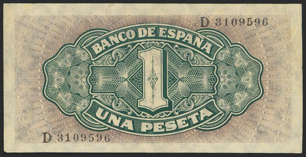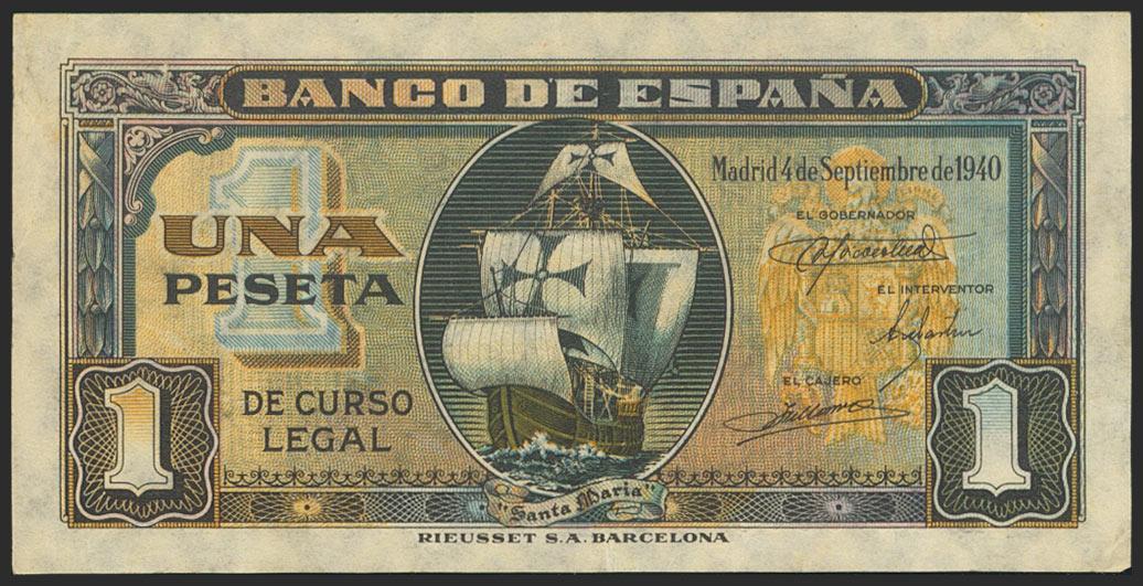 1 peseta. September 4, 1940. Series D. (Edifil 2021: 442a). Retains much of the original size. Good Extremely Fine.