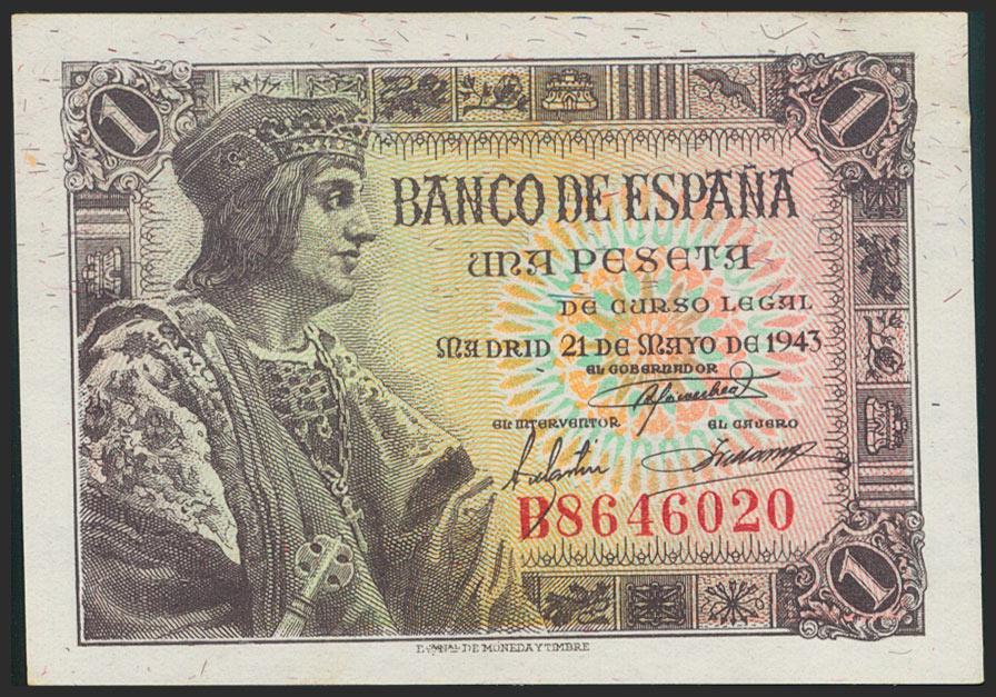 1 peseta. May 21, 1943. Series B. (Edifil 2021: 447a). Original sizing. Almost Uncirculated.