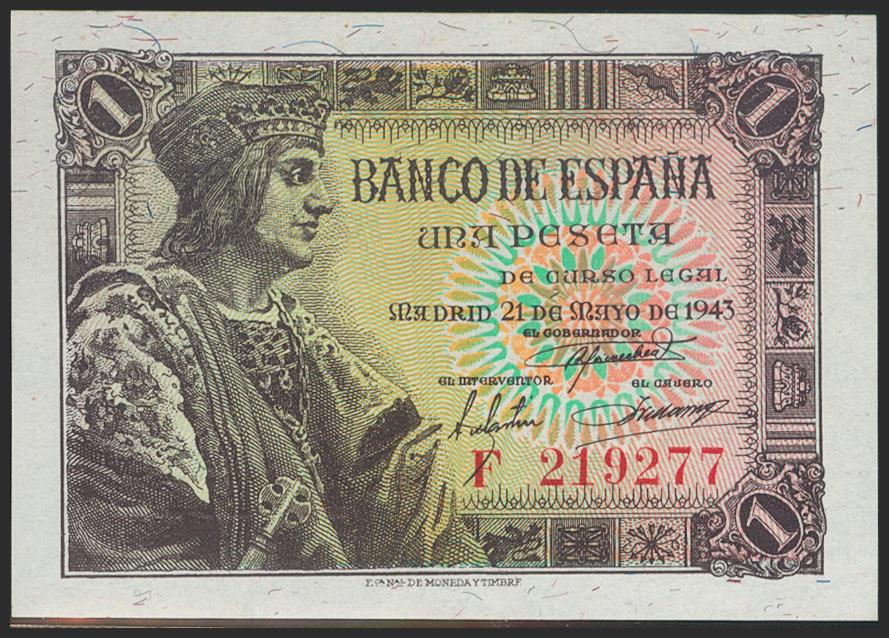 English 1 peseta. May 21, 1943. Series F. (Edifil 2021: 447a). Original sizing. Uncirculated.