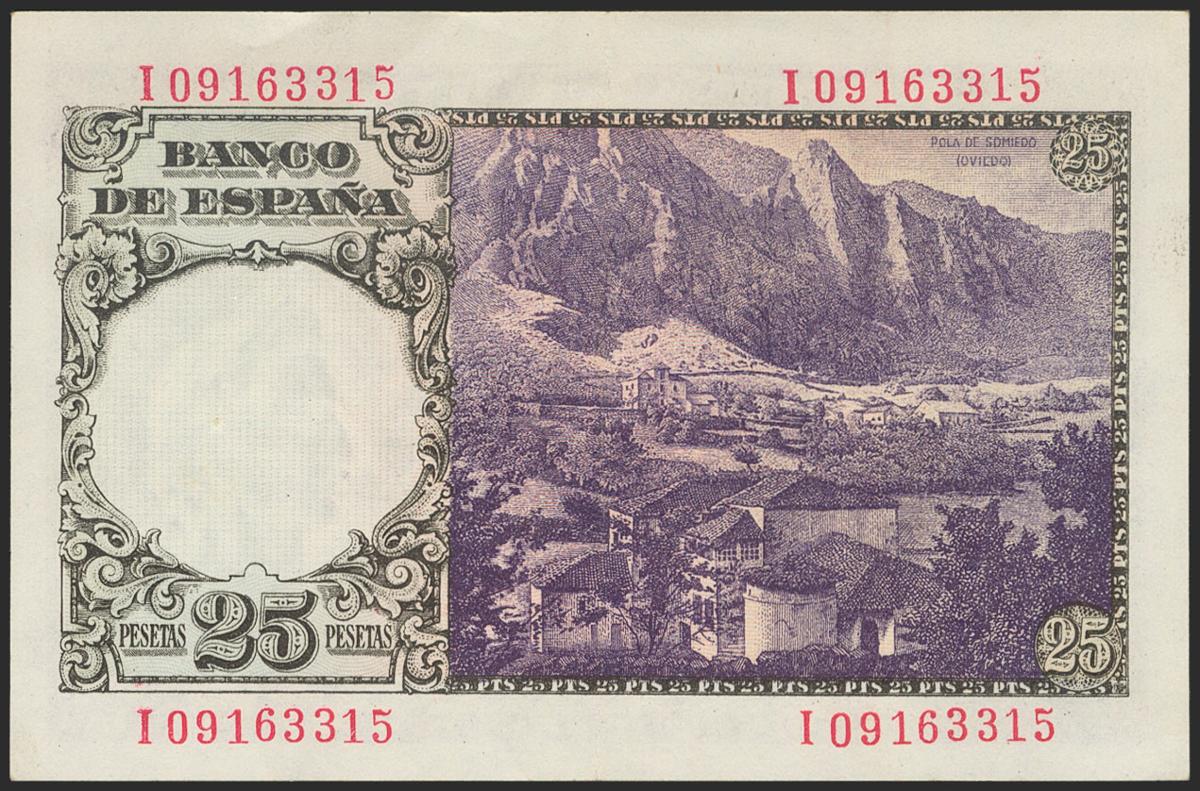25 Pesetas. February 16, 1946. Series I. (Edifil 2021: 450a). Keep some original sizing. Almost Extremely Fine.