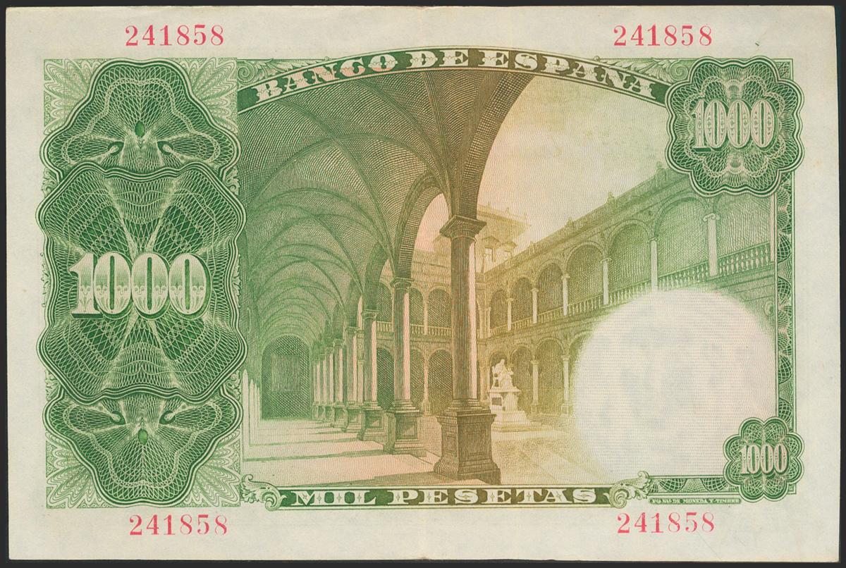 1000 Pesetas. February 19, 1946. Without series. (Edifil 2021: 453). It presents part of its original size. Extremely Fine.