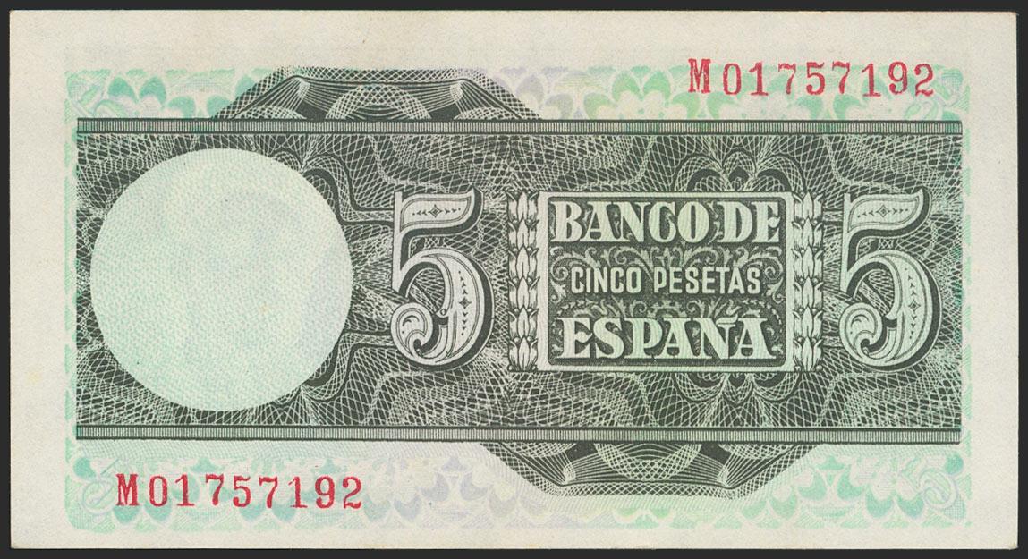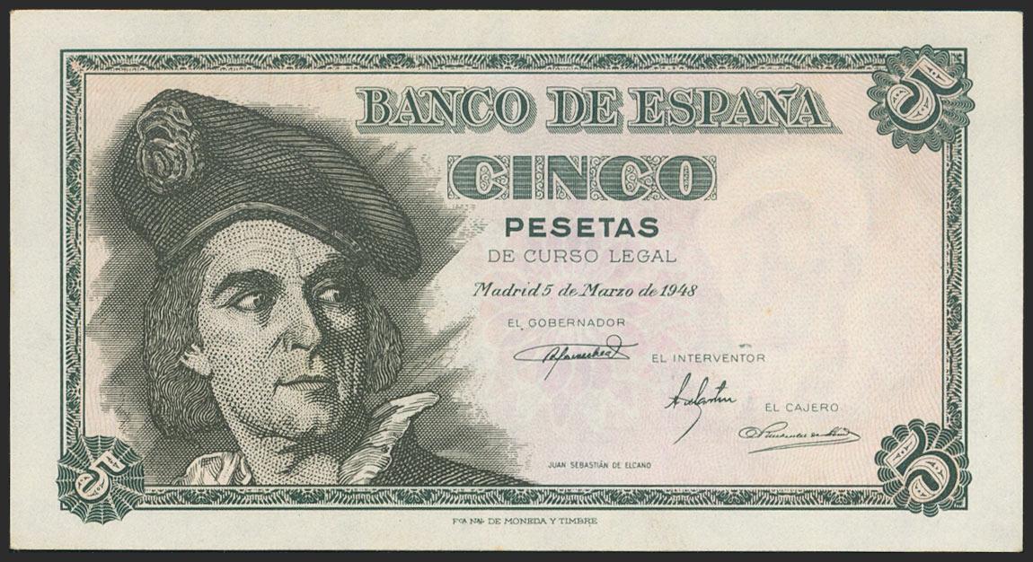 5 Pesetas. March 15, 1948. Series M. (Edifil 2021: 455a). Original sizing. Uncirculated.