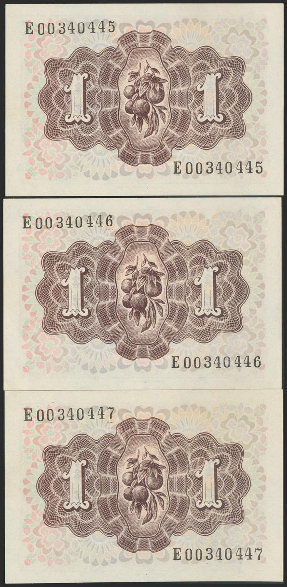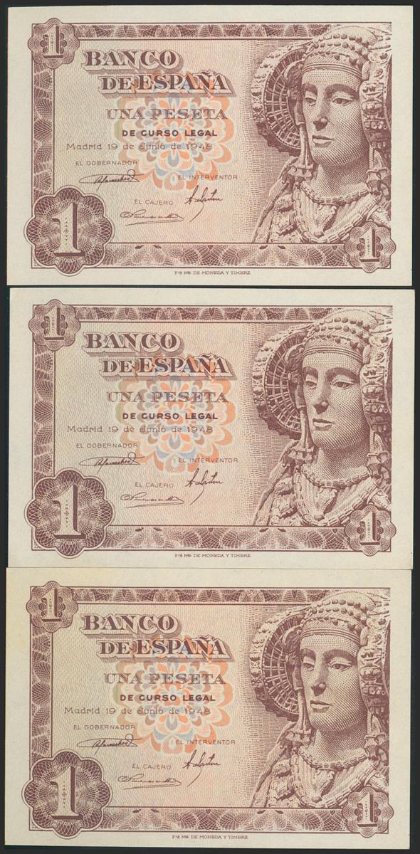 1 peseta. June 19, 1948. Correlative trio. Series E. (Edifil 2021: 457a). Original sizing. Uncirculated.