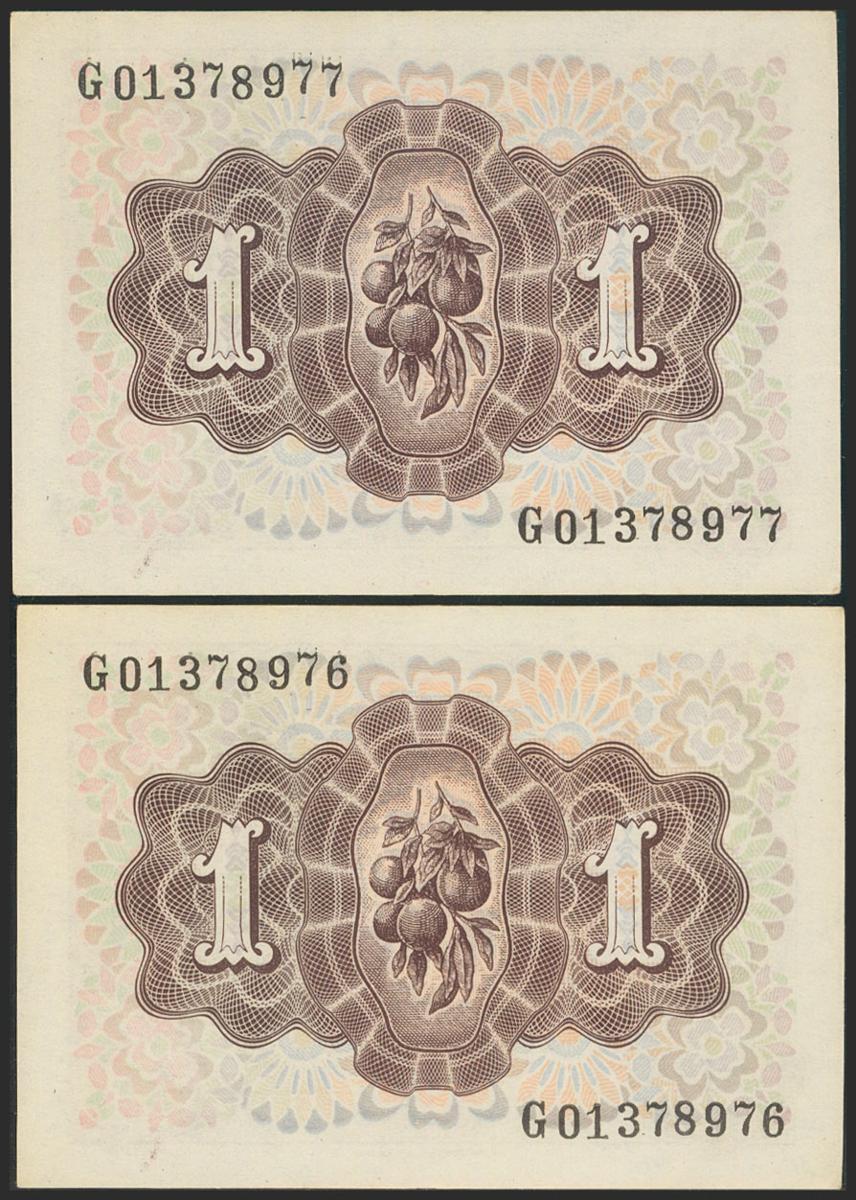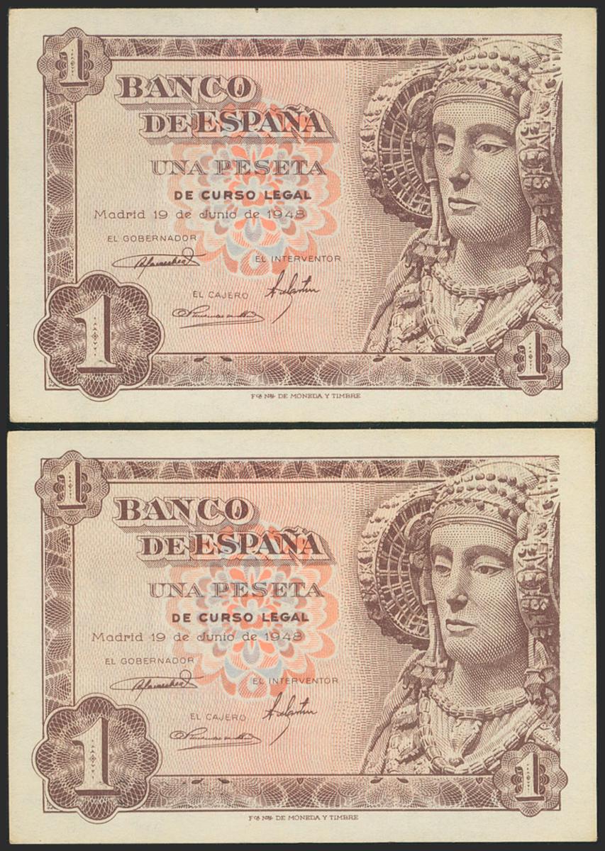 1 peseta. June 19, 1948. Correlative couple. Series G. (Edifil 2021: 457a). Original sizing. Almost Uncirculated.