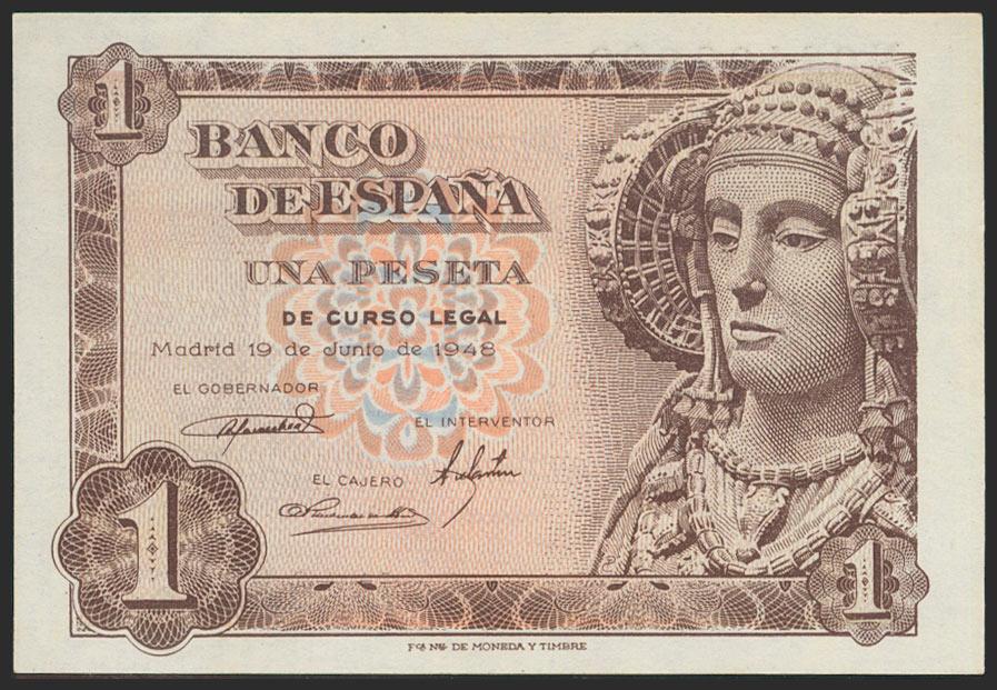 1 peseta. June 19, 1948. Series N. (Edifil 2021: 457a). Original sizing. Almost Uncirculated.