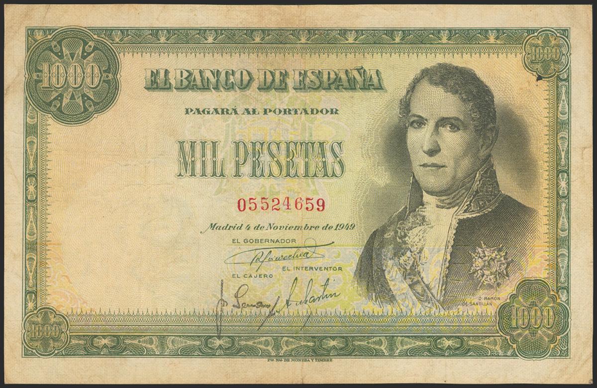 1000 Pesetas. November 4, 1949. Without series. (Edifil 2021: 458). Fine.