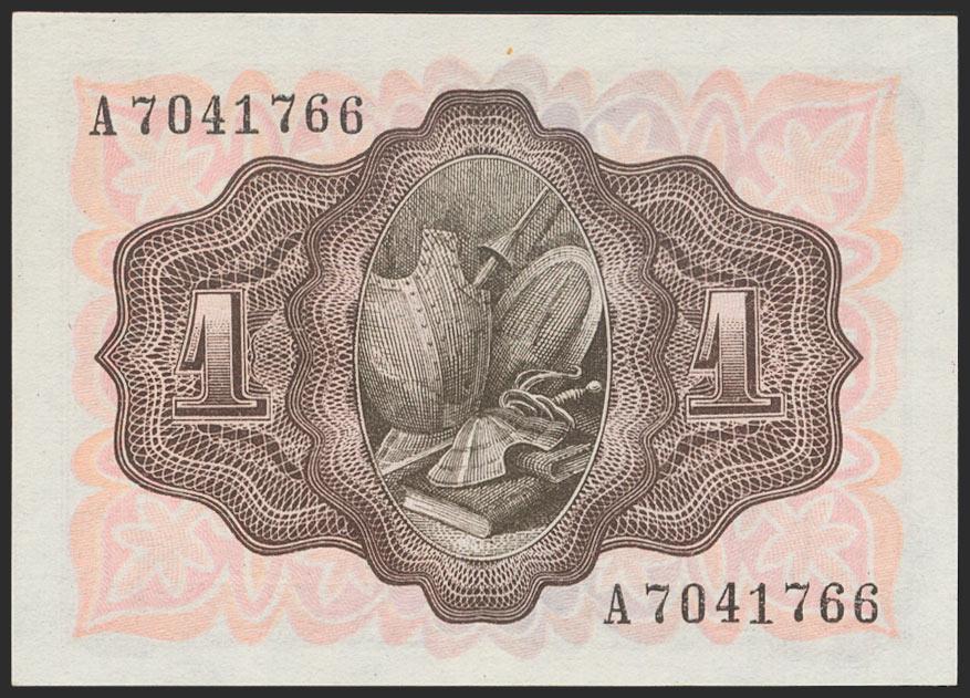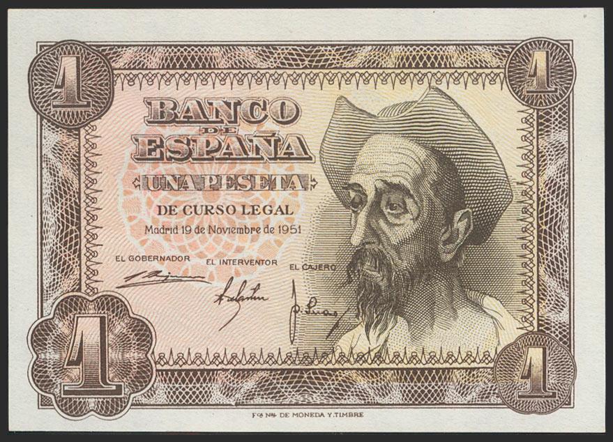 English 1 peseta. November 19, 1951. Series A. (Edifil 2021: 461a). Original sizing. Uncirculated.