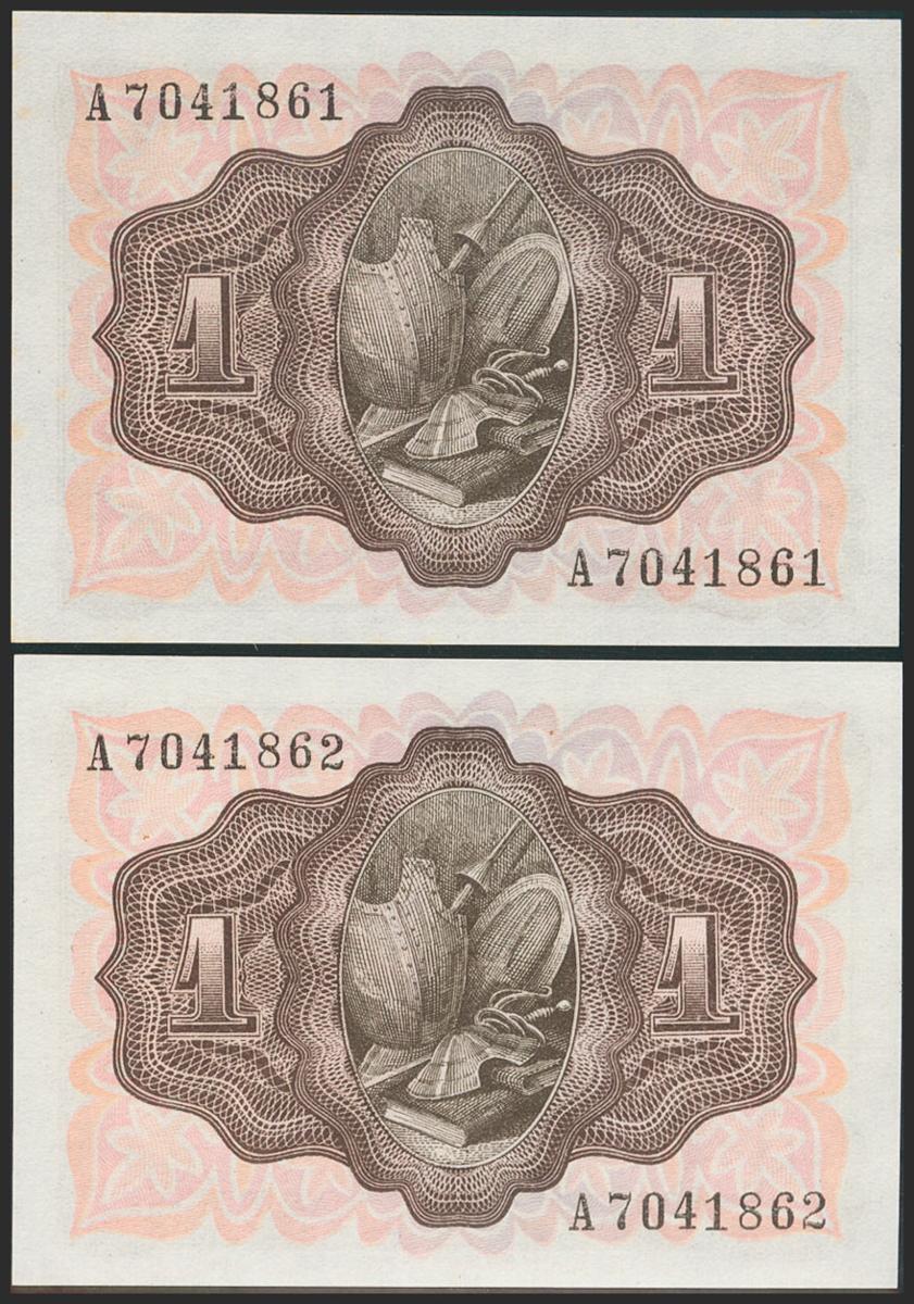 1 peseta. November 19, 1951. Correlative couple. Series A. (Edifil 2021: 461a). Original sizing. Almost Uncirculated.