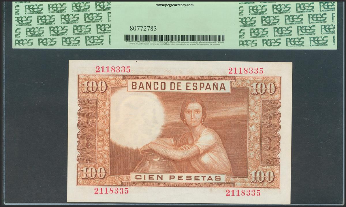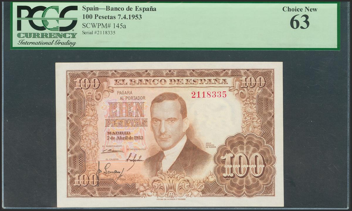 100 pesetas. April 7, 1953. Without series. (Edifil 2021: 464). Unusual Uncirculated. Encapsulated PCGS63.