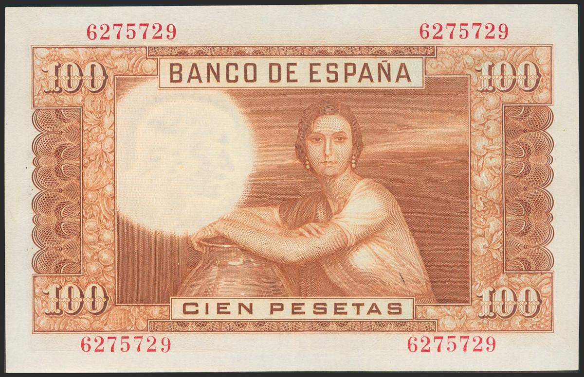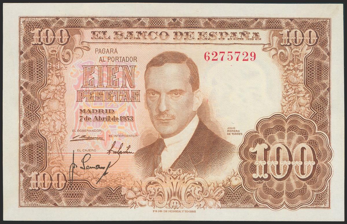 100 pesetas. April 7, 1953. Without series. (Edifil 2021: 464). Retains much of the original size. Good Extremely Fine.