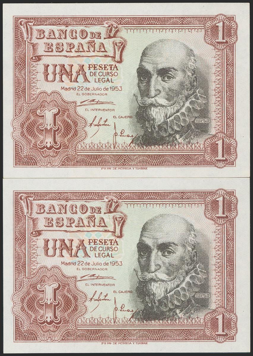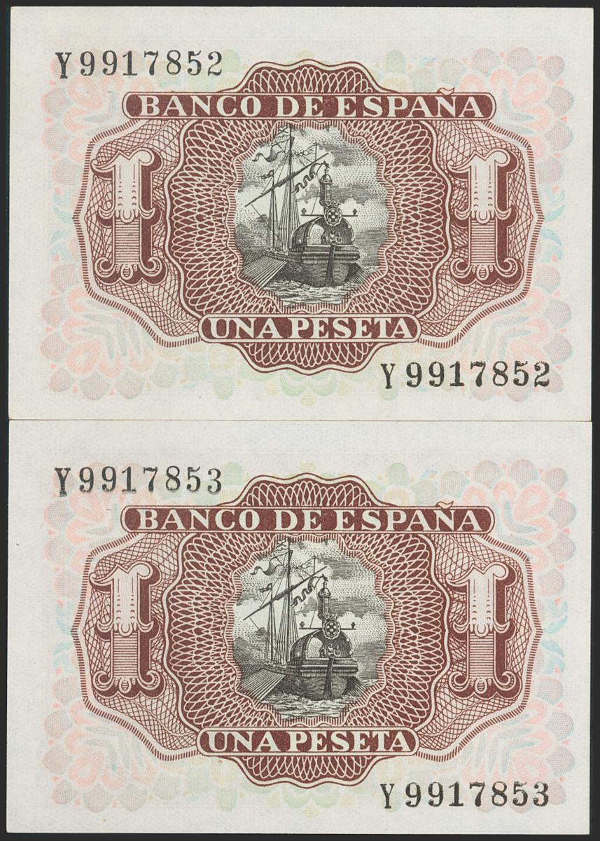 1 peseta. July 22, 1953. Correlative couple. Series Y. (Edifil 2021: 465a). Uncirculated.