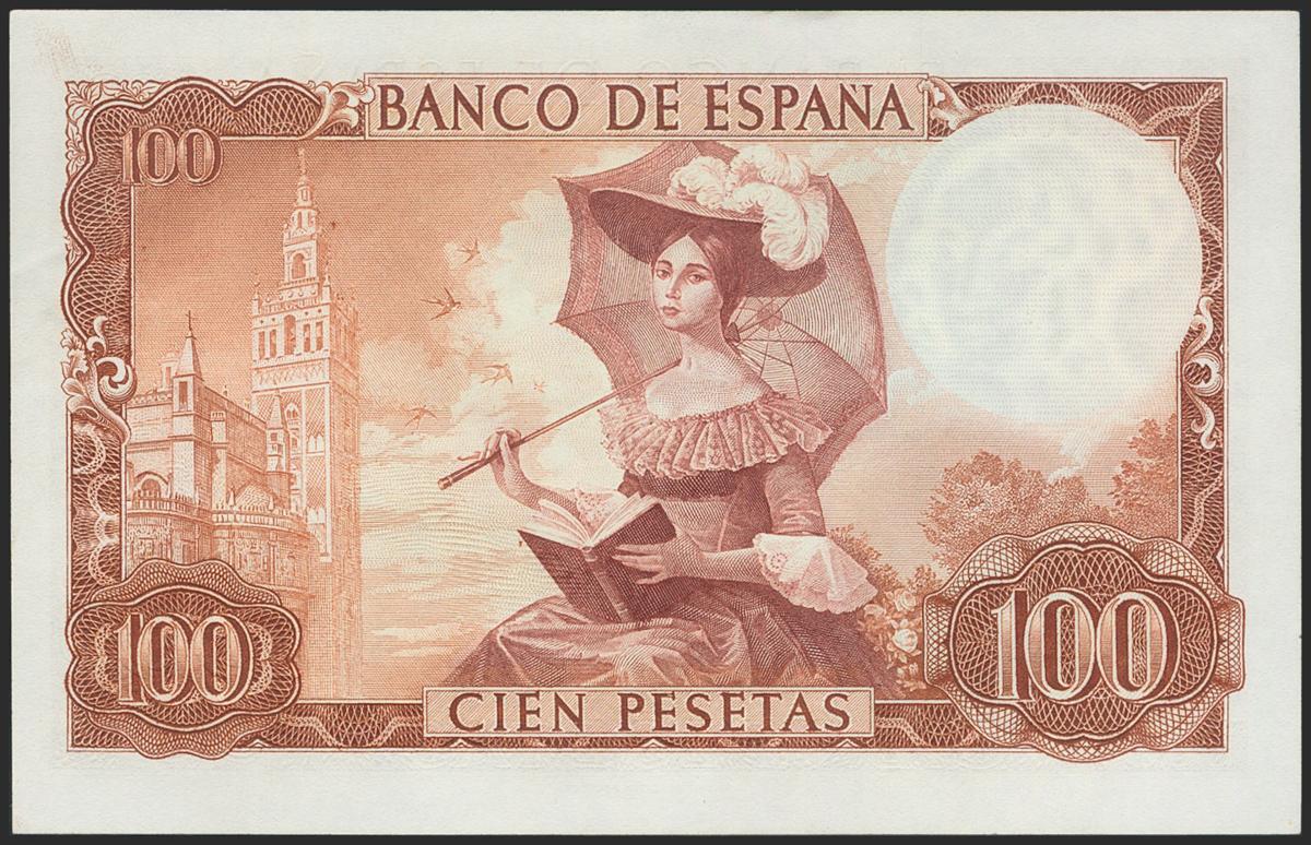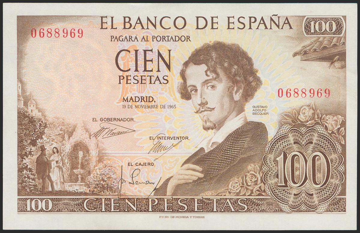 100 pesetas. November 17, 1965. Without series. (Edifil 2021: 470). Original sizing. Almost Uncirculated.