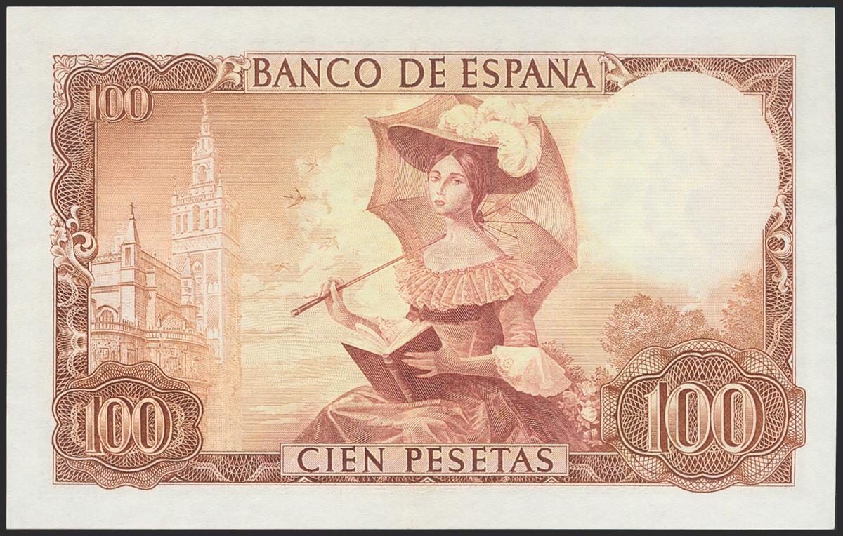 100 pesetas. November 19, 1965. Series 1N. (Edifil 2021: 470a). Retains much of the original size. Good Extremely Fine.