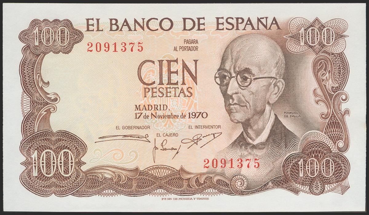 100 pesetas. November 17, 1970. Without series. (Edifil 2021: 472). Uncirculated.
