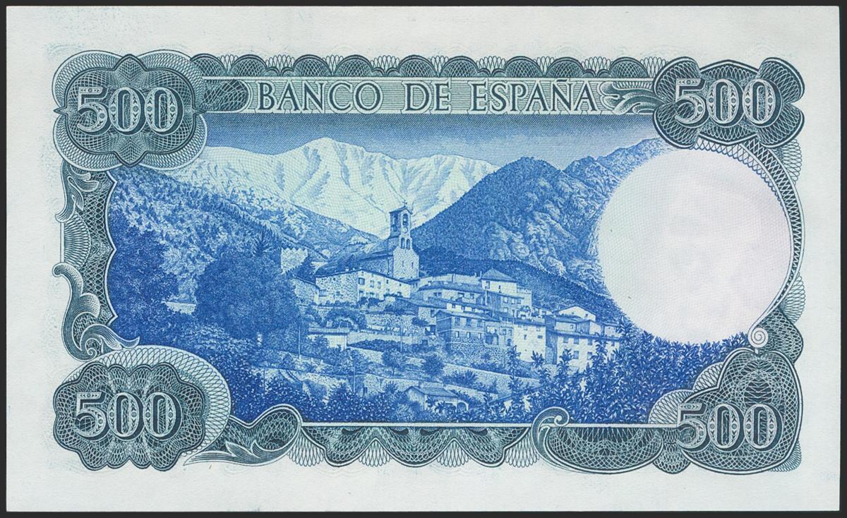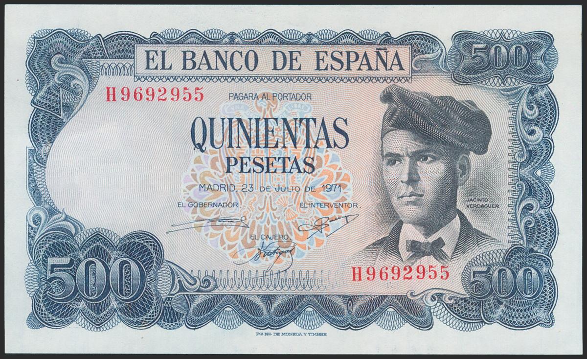 500 pesetas. July 23, 1971. Series H. (Edifil 2021: 473a). It keeps all its original size. Uncirculated.