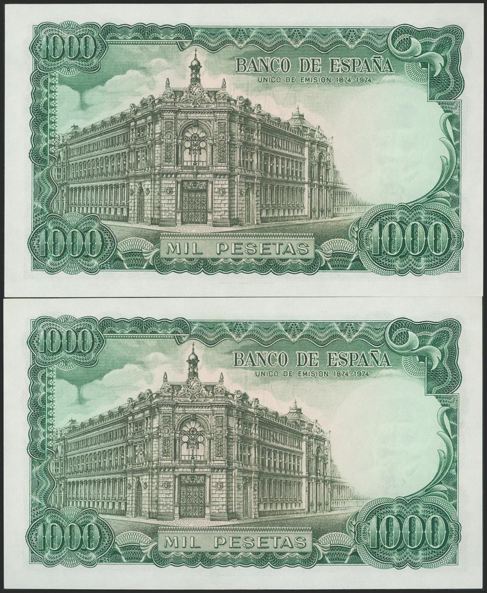 1000 Pesetas. September 17, 1971. Correlative pair. 5X series. (Edifil 2021: 474c). It keeps all its original size. Uncirculated.