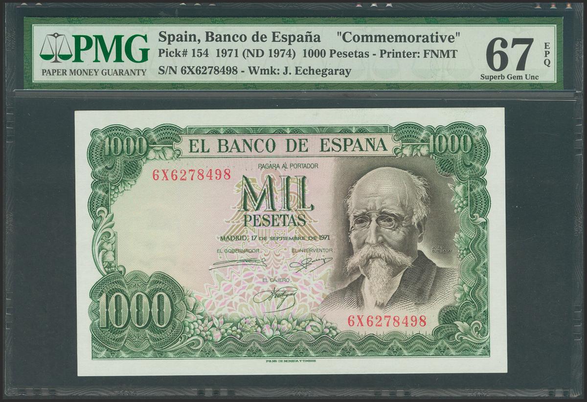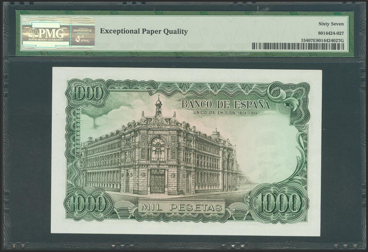 1000 Pesetas. September 17, 1971. 6X Series. (Edifil 2021: 474c). Original sizing. Uncirculated. PMG67EPQ package.