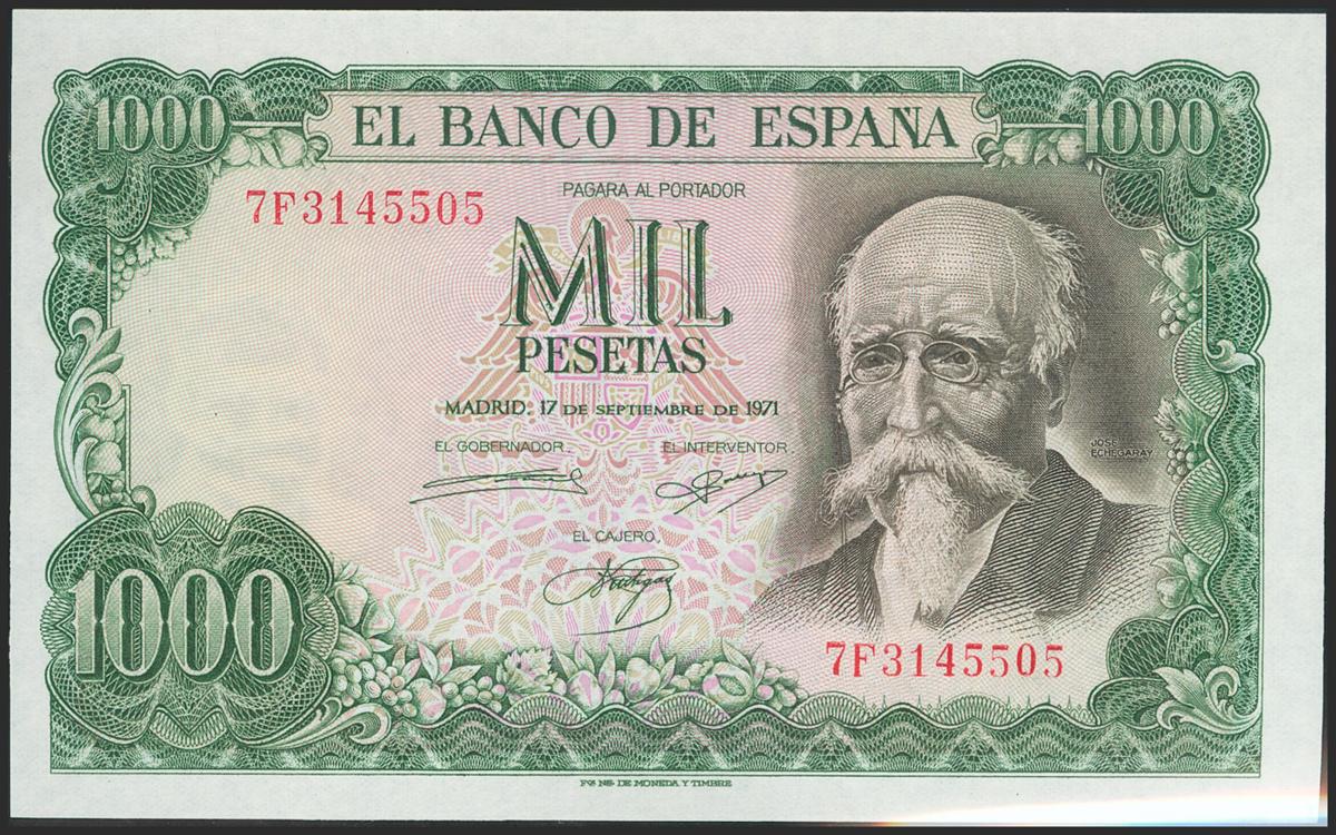 1000 Pesetas. September 17, 1971. Series 7F. (Edifil 2021: 474c). Original sizing. Uncirculated.