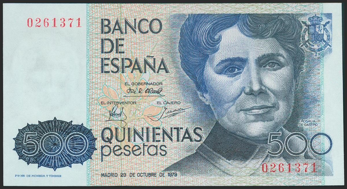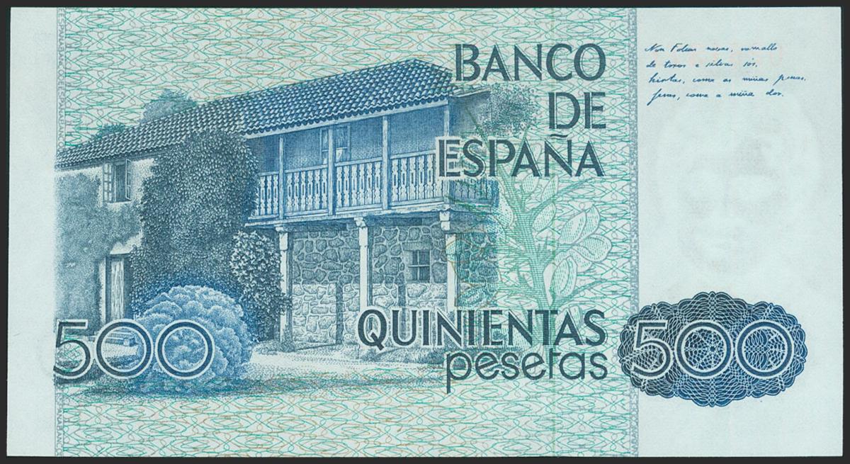 English 500 pesetas. October 23, 1979. No series and numbering starting with "0". (Edifil 2021: 476). Almost Uncirculated.