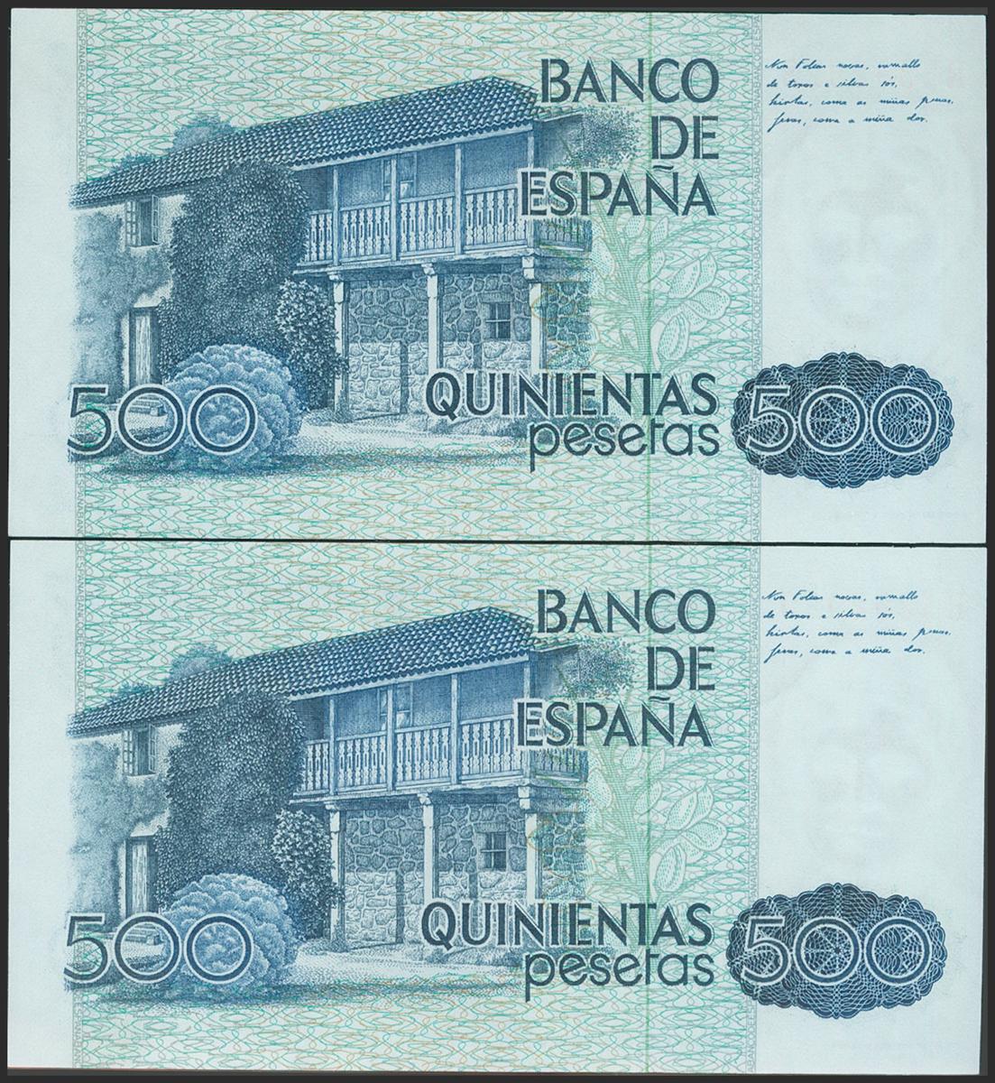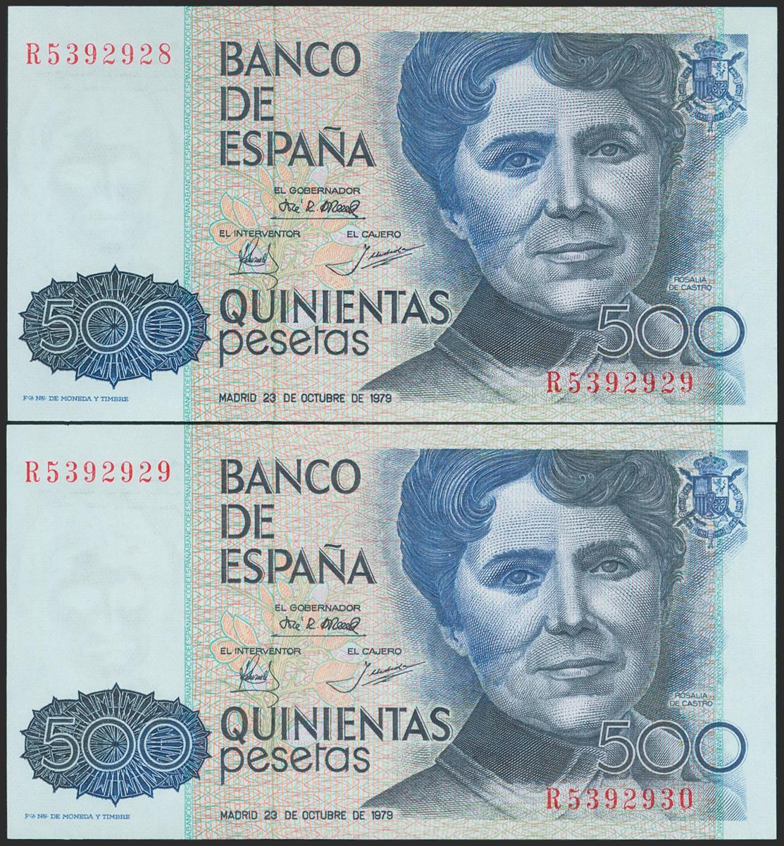 500 pesetas. October 23, 1979. Correlative couple. Series R. (Edifil 2021: 476b). Almost Uncirculated.