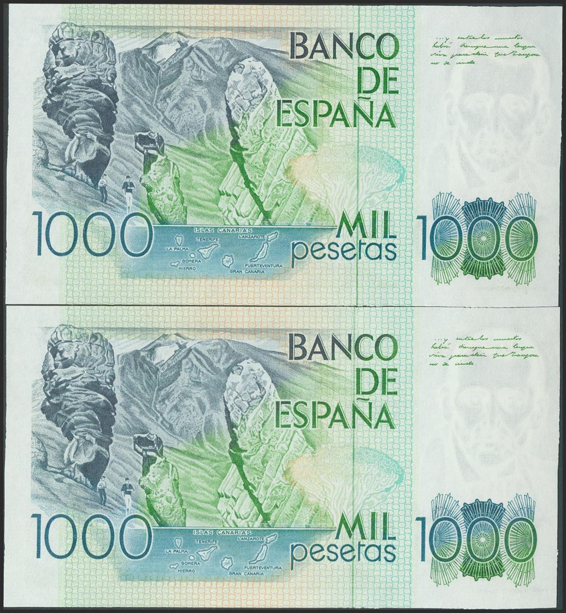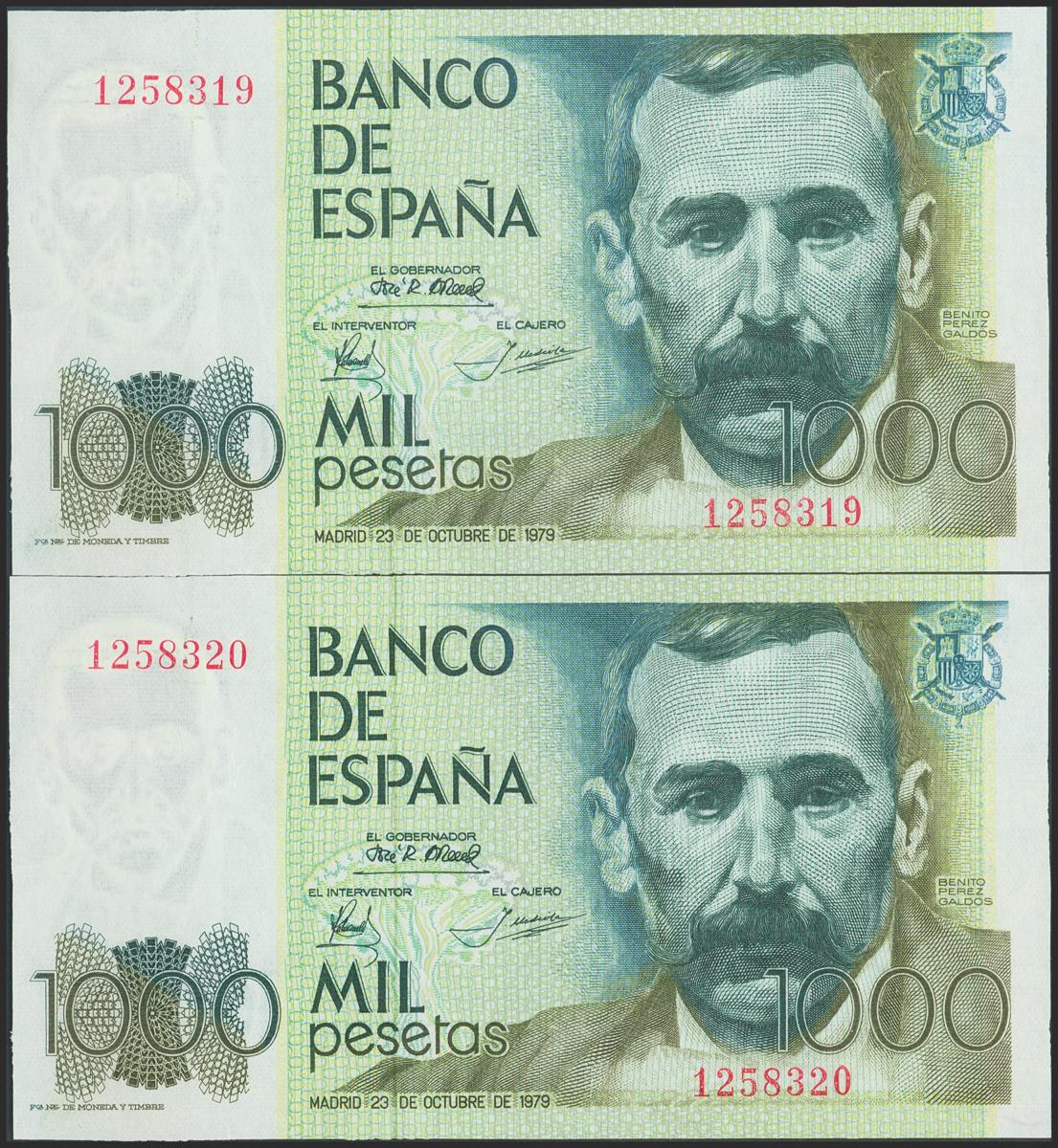 1000 Pesetas. October 23, 1979. Correlative couple. No serie. (Edifil 2017: 477). Uncirculated.
