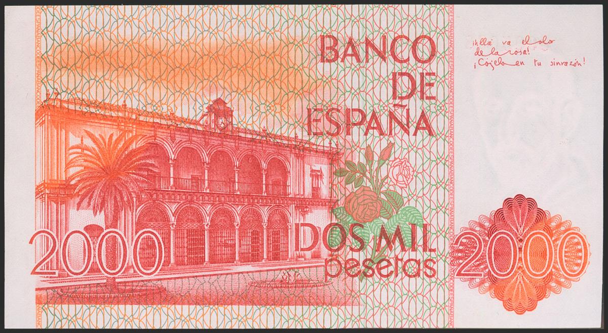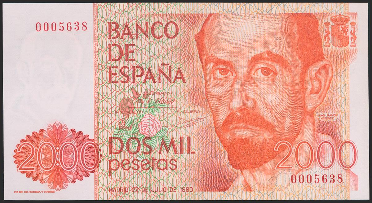 2000 pesetas. July 22, 1980. No series and very low numbering. (Edifil 2017: 479). Uncirculated.