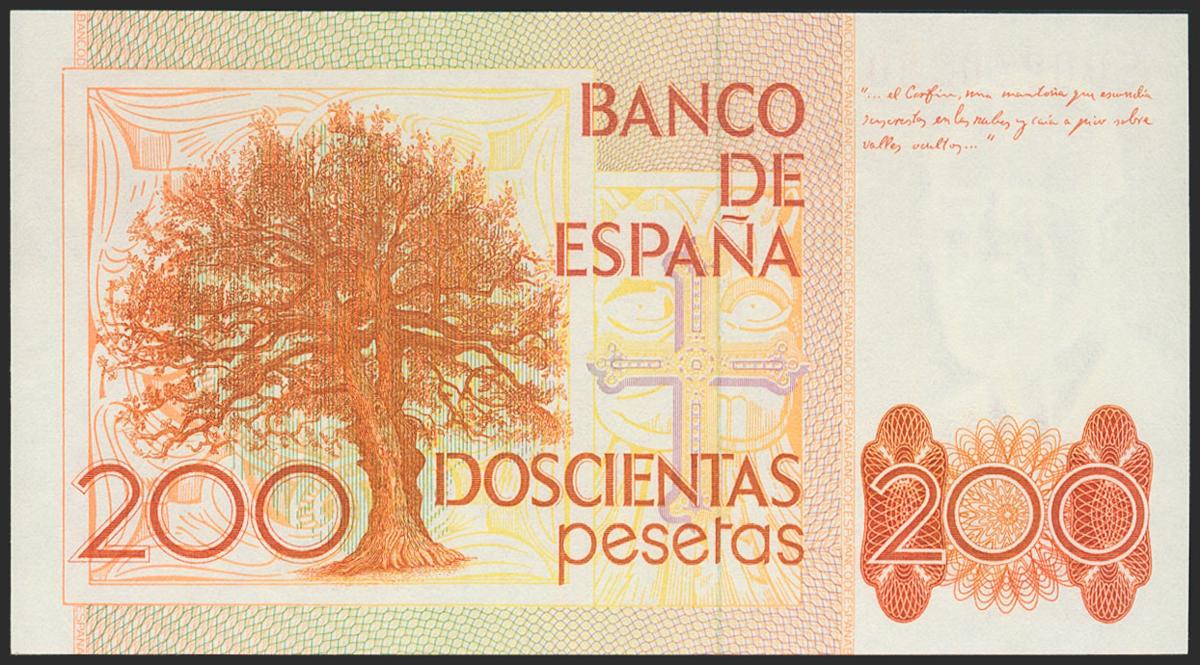 200 pesetas. September 16, 1980. Special series 8D. (Edifil 2021: 480c). Uncirculated.