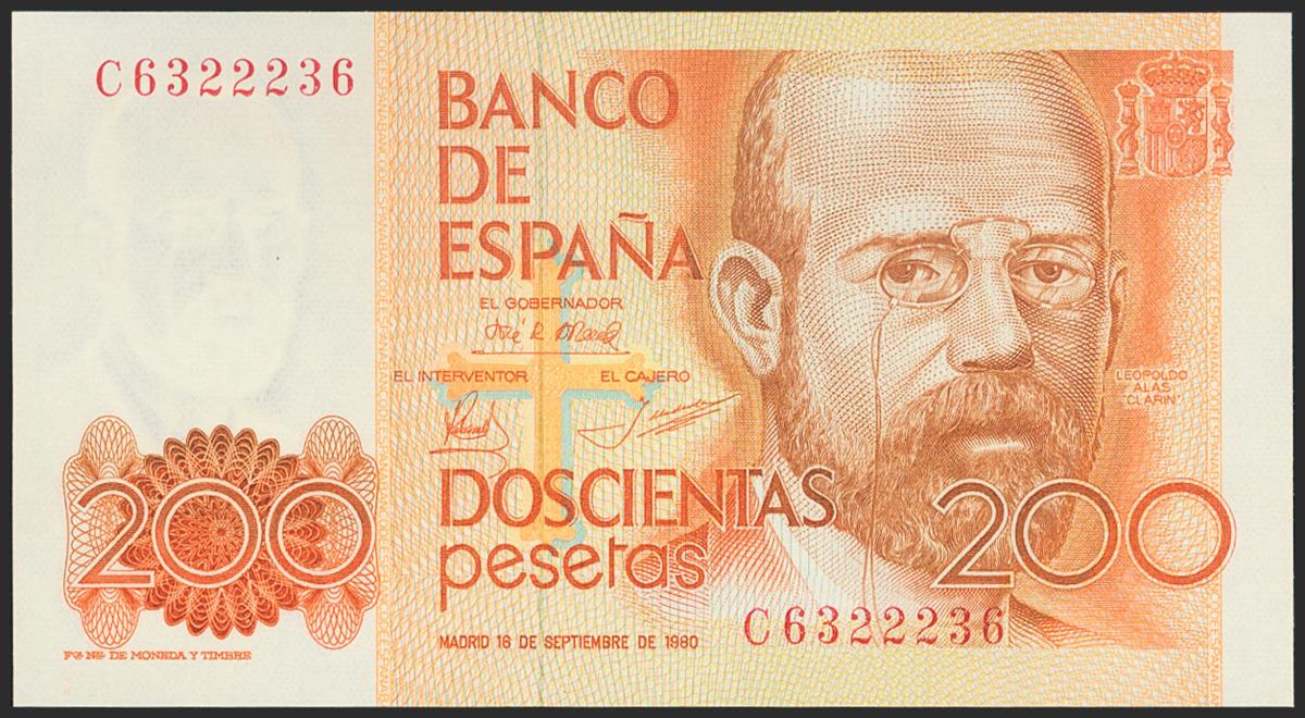 200 pesetas. September 16, 1980. Series C and capicúa numbering. (Edifil 2021: 480a). Uncirculated.