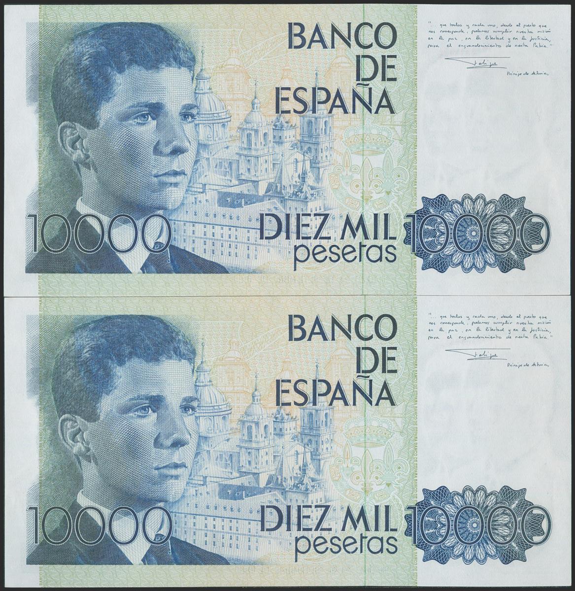 10000 Pesetas. September 24, 1985. Correlative pair. No serie. (Edifil 2021: 481). Uncirculated.