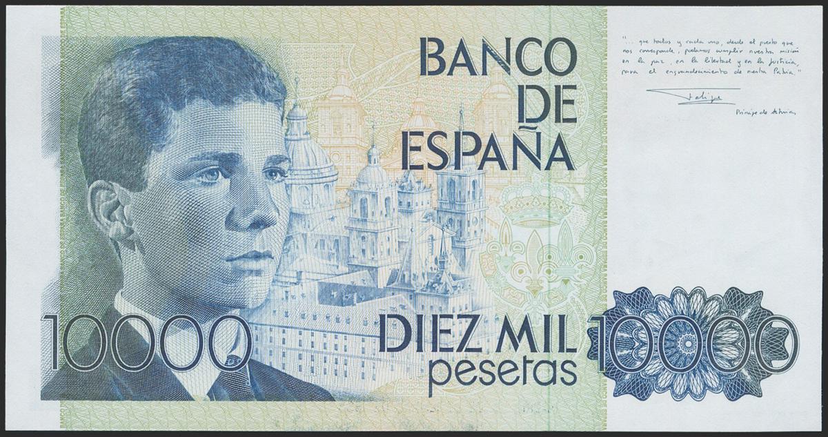 English 10000 Pesetas. September 24, 1985. Series 9A, special numbering. (Edifil 2017: 481b). Uncirculated.