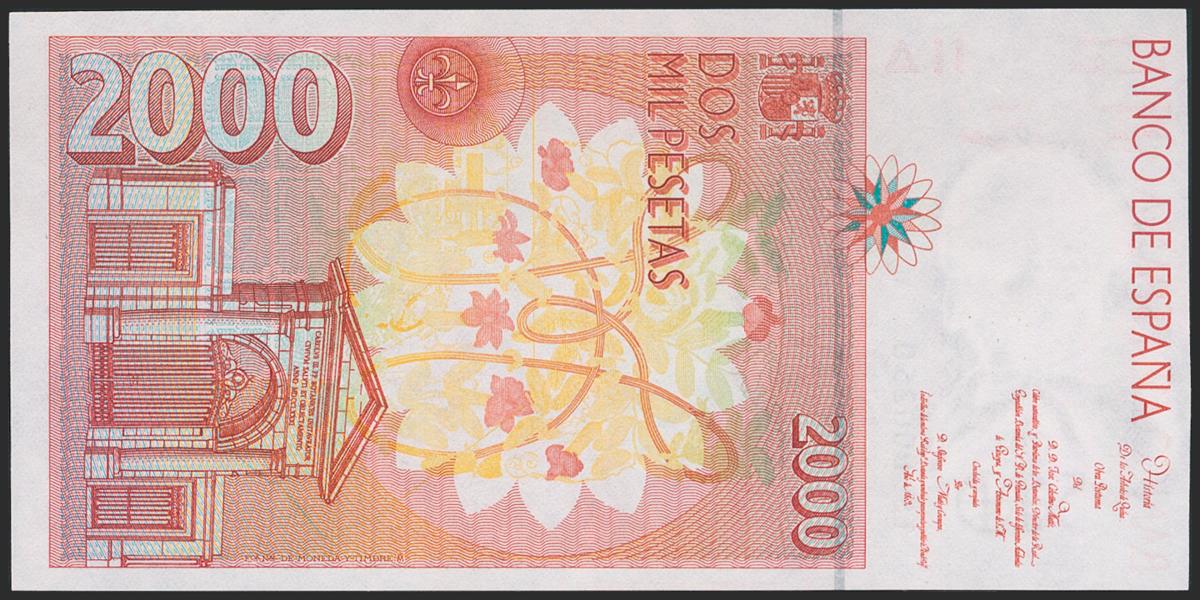 2000 pesetas. April 24, 1992. Series 1S and very low numbering. (Edifil 2021: 482A). Uncirculated.