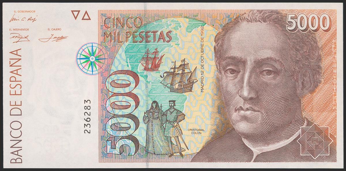 English 5000 pesetas. October 12, 1992. Without series. (Edifil 2021: 484). Uncirculated.