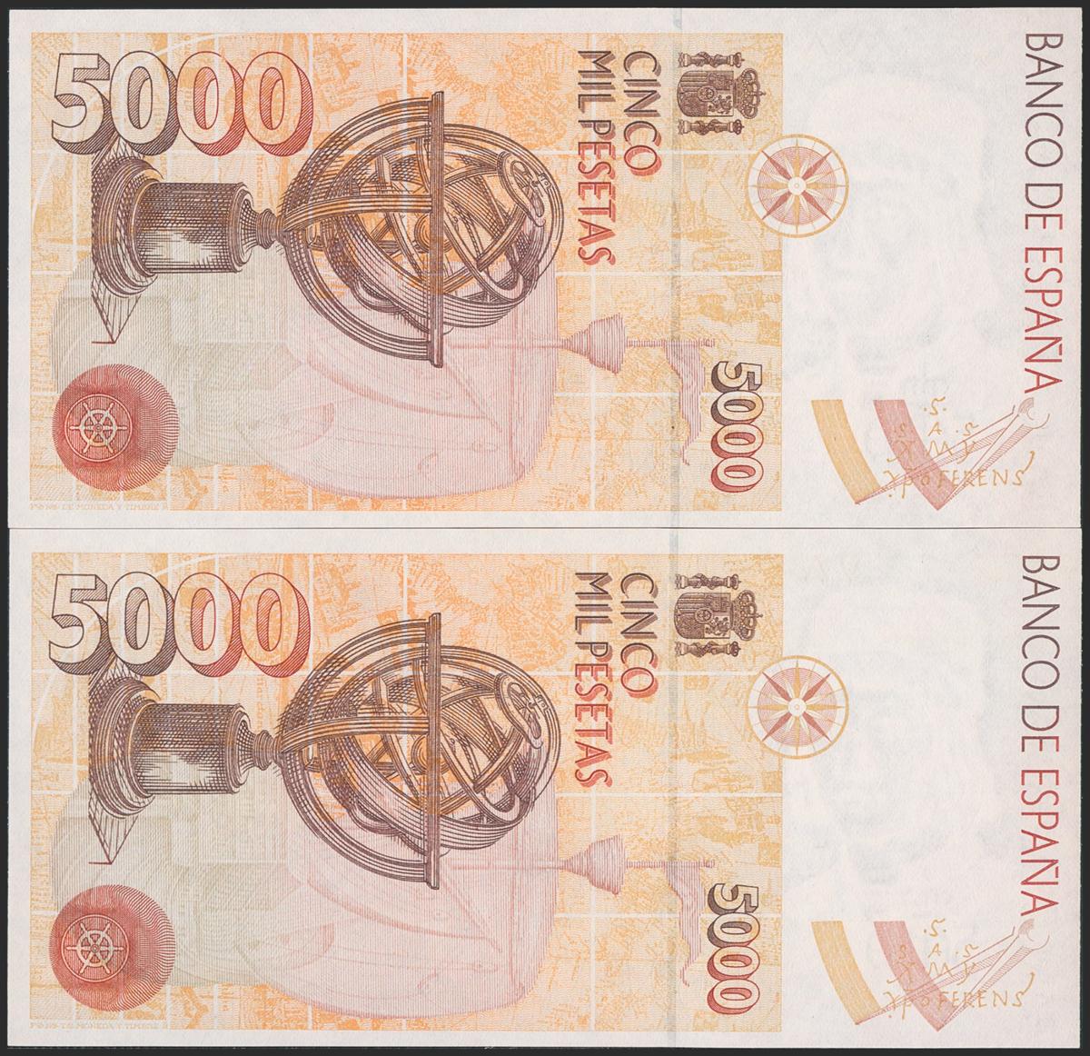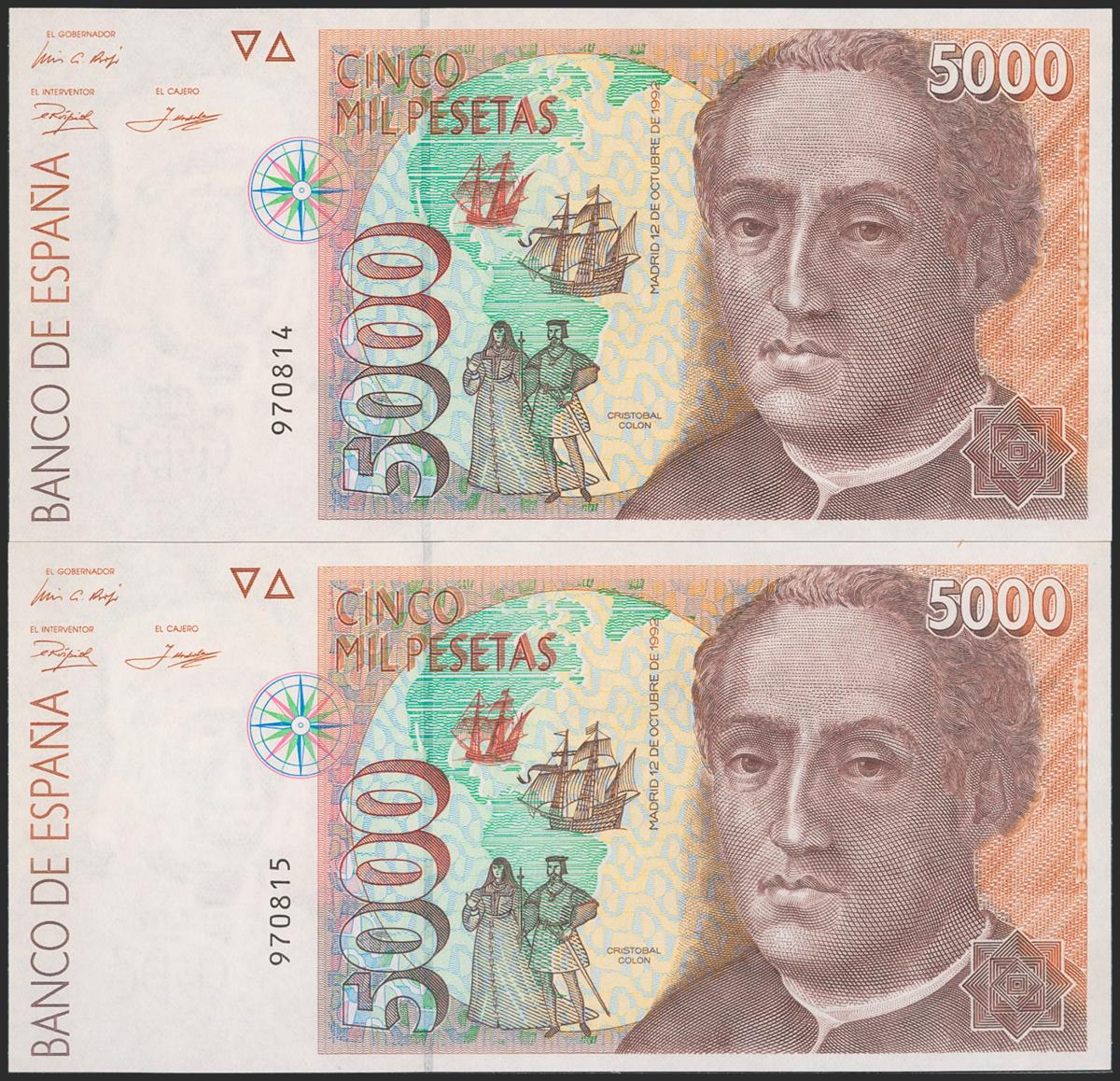 5000 pesetas. October 12, 1992. Correlative pair. No serie. (Edifil 2021: 484). Uncirculated.
