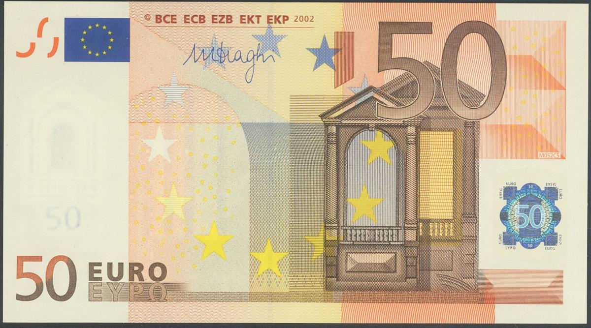 50 euros. January 1, 2002. Draghi Signature. Series V (Spain). (Edifil 2017: 489B). Uncirculated.