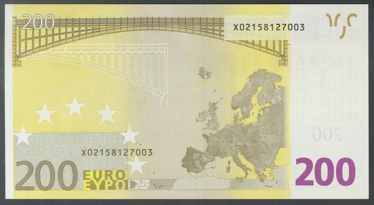 200 euros. January 1, 2002. Signature Duisenberg. Series X (Germany). (Edifil 2017: 491). Uncirculated.