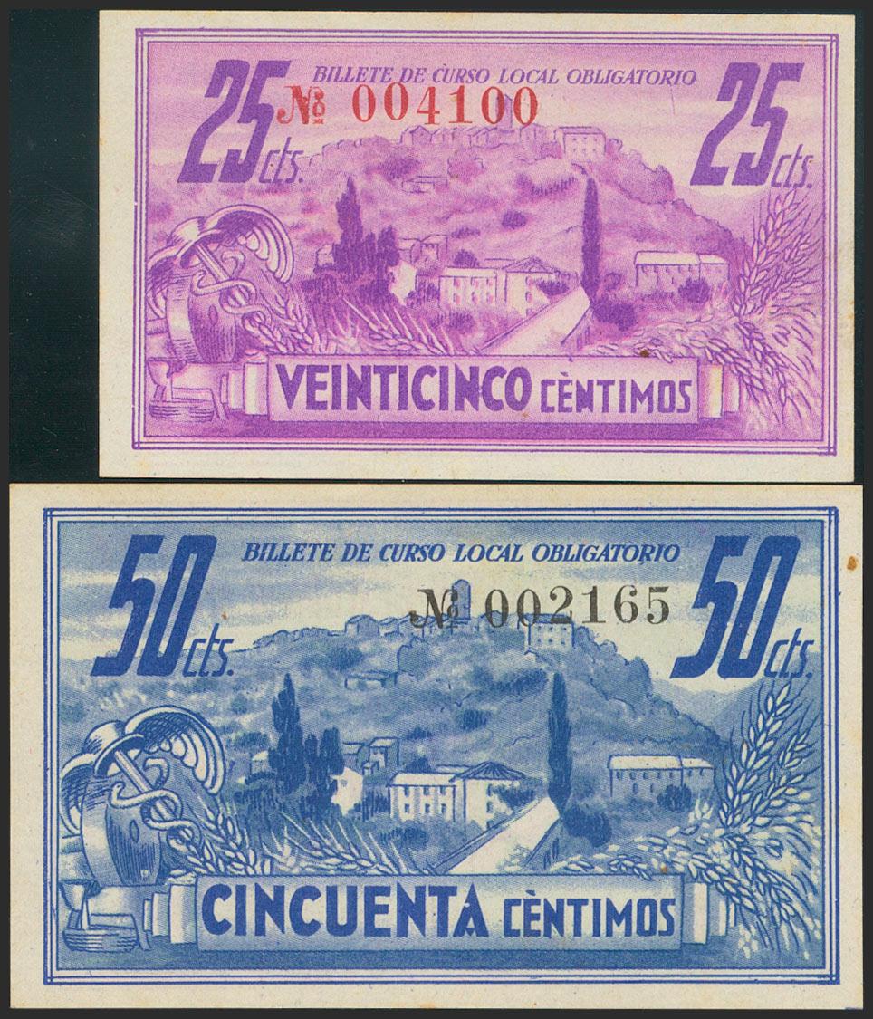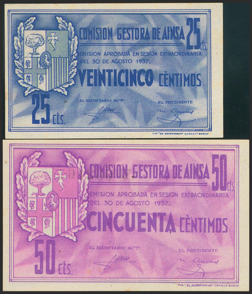 AINSA (HUESCA). 25 Cents and 50 Cents. August 30, 1937. (González: 105, 106). Uncirculated.