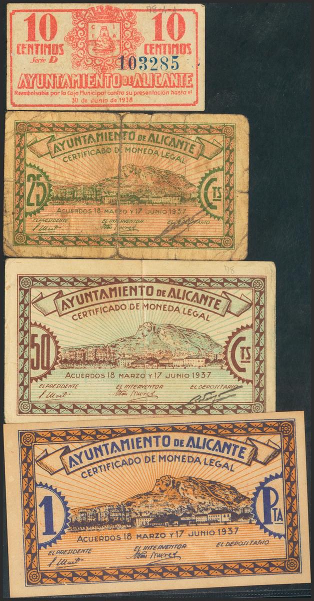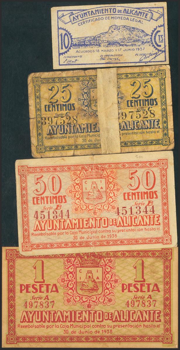 ALICANTE. 10 Cents, 25 Cents, 50 Cents and 1 Peseta. June 17, 1937. Series D, C, B and A, respectively. (González: 507/10). Unusual complete series. Almost Very Fine/ Almost Uncirculated.