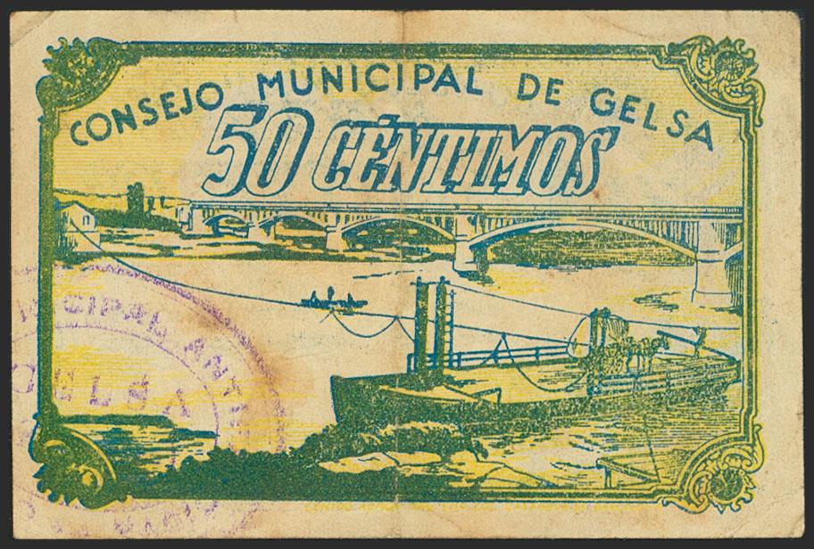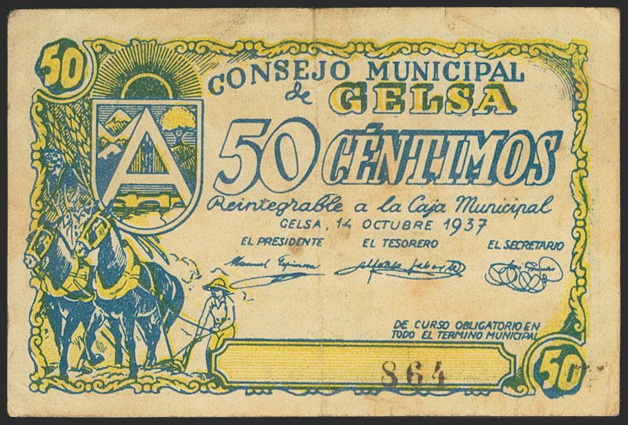 GELSA (ZARAGOZA). 50 cents. October 14, 1937. (González: 2640). Unusual Good Very Fine.