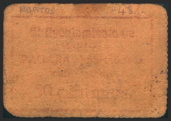 MARTOS (JAEN). 50 cents. (1938ca). (González: 3396). Very rare. Fine.